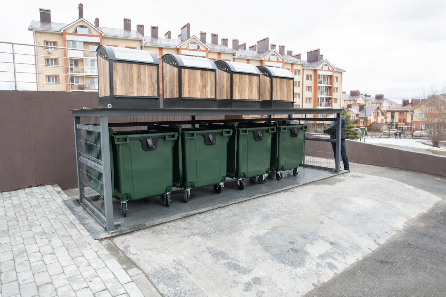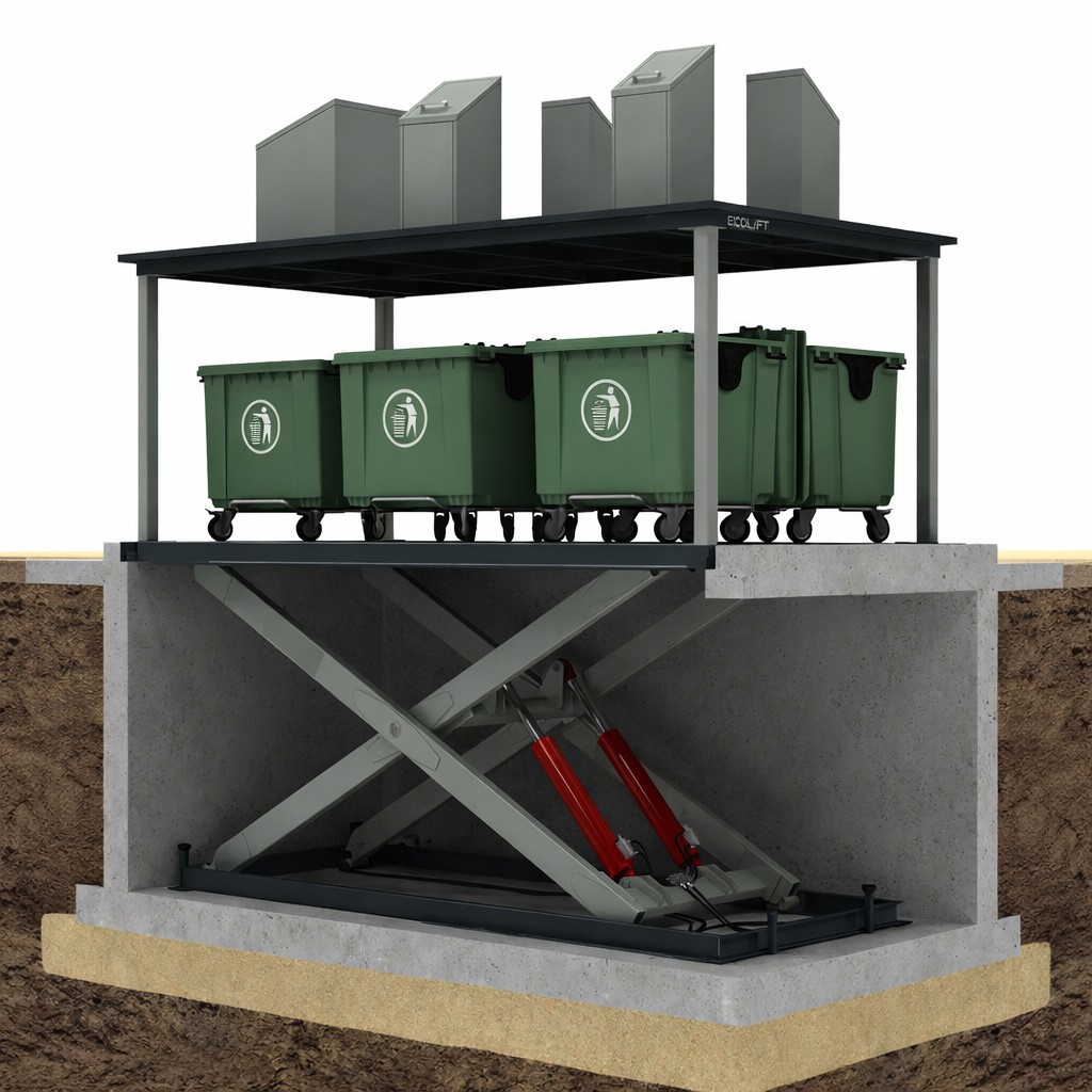 HABA ECOLIFT on ihanteellinen ratkaisu ahtaisiin tiloihin, joissa halutaan pitää paikat siistinä ja piilottaa jäteastiat pois näkyvistä. Jo olemassa olevat 4-pyöräiset standardiastiat voidaan tyylikkäästi varastoida hydraulisen maanalaisessa hissijärjestelmän avulla ja tyhjentää tavanomaisella jätteenkeräysajoneuvolla. Maanpäällinen täyttöastiana voidaan käyttää vakiomallejamme tai ne räätälöidään asiakkaan tarpeiden mukaisesti.